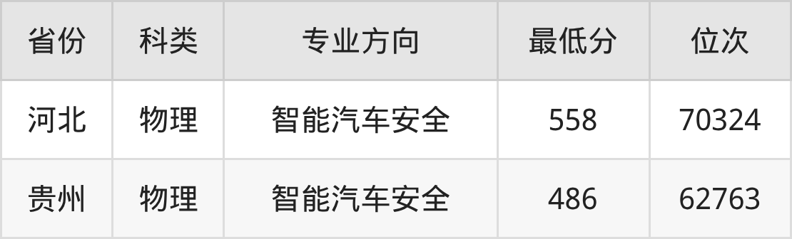 2025年湖北汽车工业学院信息安全专业在贵州录取最低分:486分,对应位次排名是62763名。