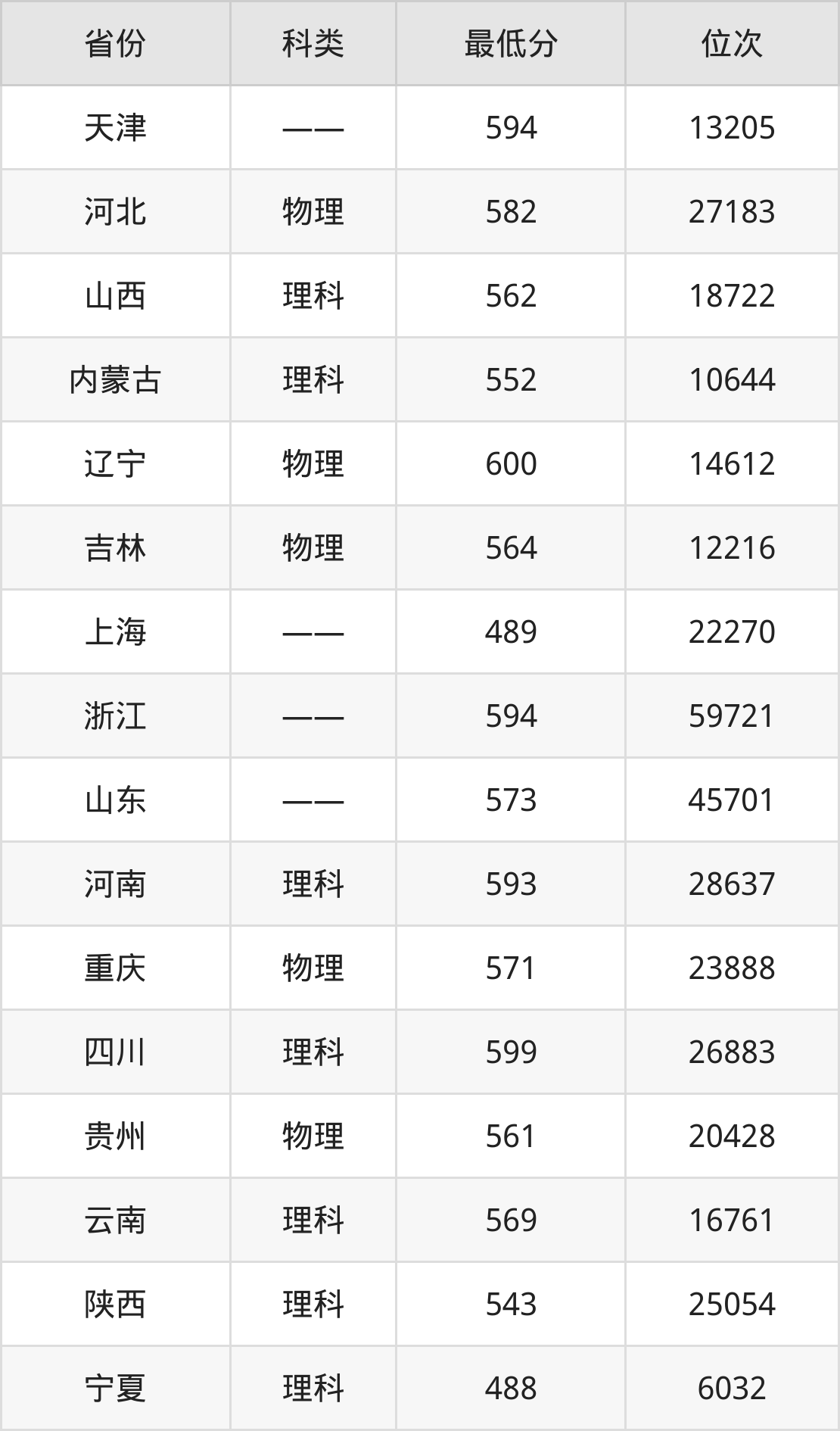 8、浙江:594分