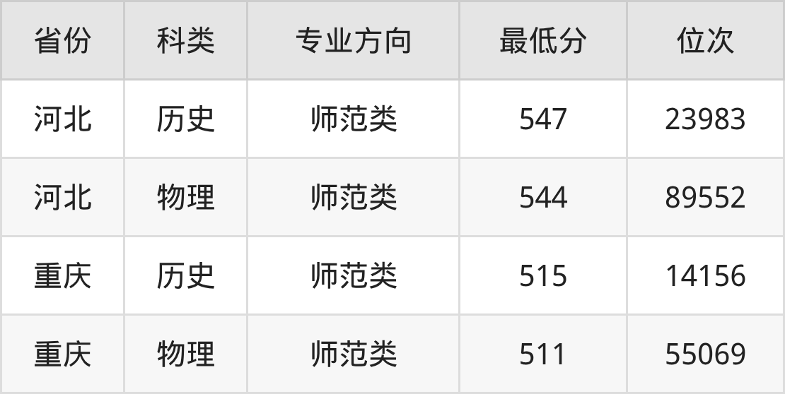 2025年邢台学院汉语言文学专业在重庆录取最低分:历史组是515分,对应位次排名是14156名;物理组是511分,对应位次排名是55069名。