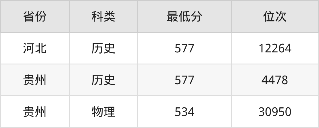 2025年贵州民族大学法学专业在河北录取最低分:577分,对应位次排名是12264名。