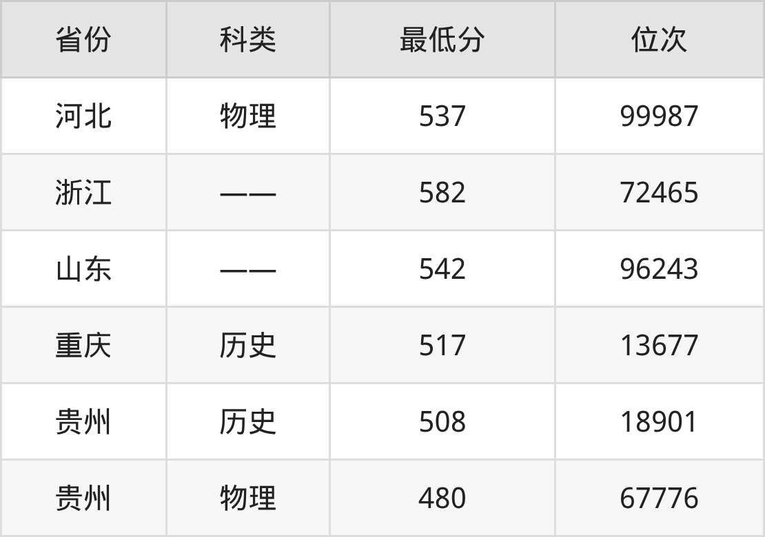 2025年金陵科技学院市场营销专业在贵州录取最低分:历史组是508分,对应位次排名是18901名;物理组是480分,对应位次排名是67776名。