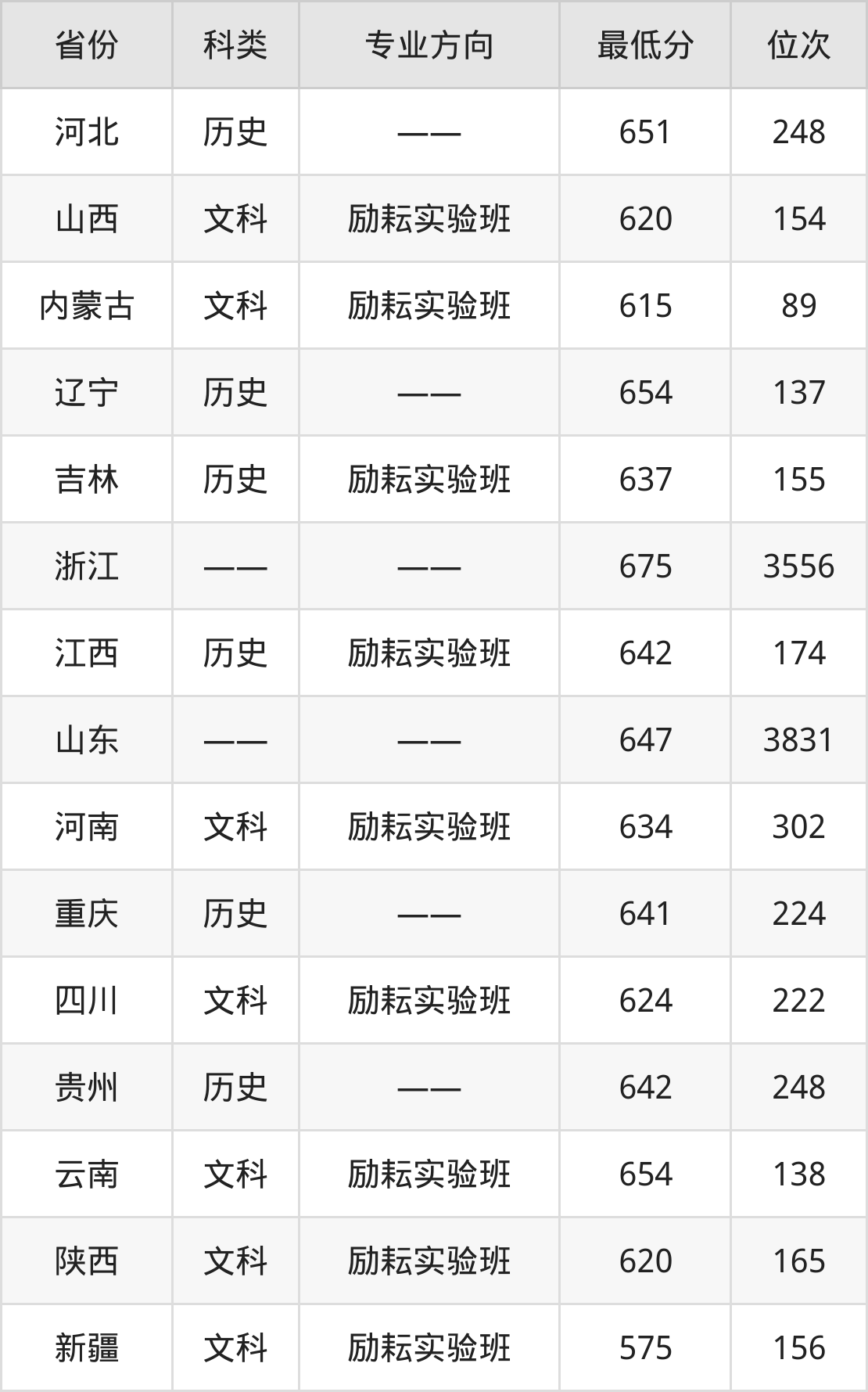 下面是2024年北京师范大学人文科学试验班专业录取分数线一览表: