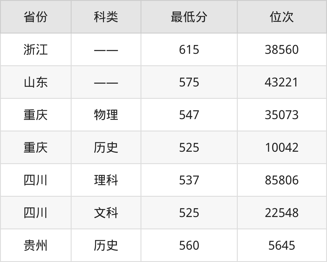 2024年重庆医科大学英语专业在浙江录取最低分:615分,对应位次排名是38560名。