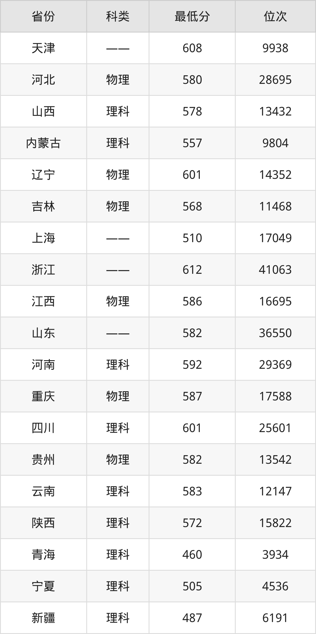 10、山东:582分