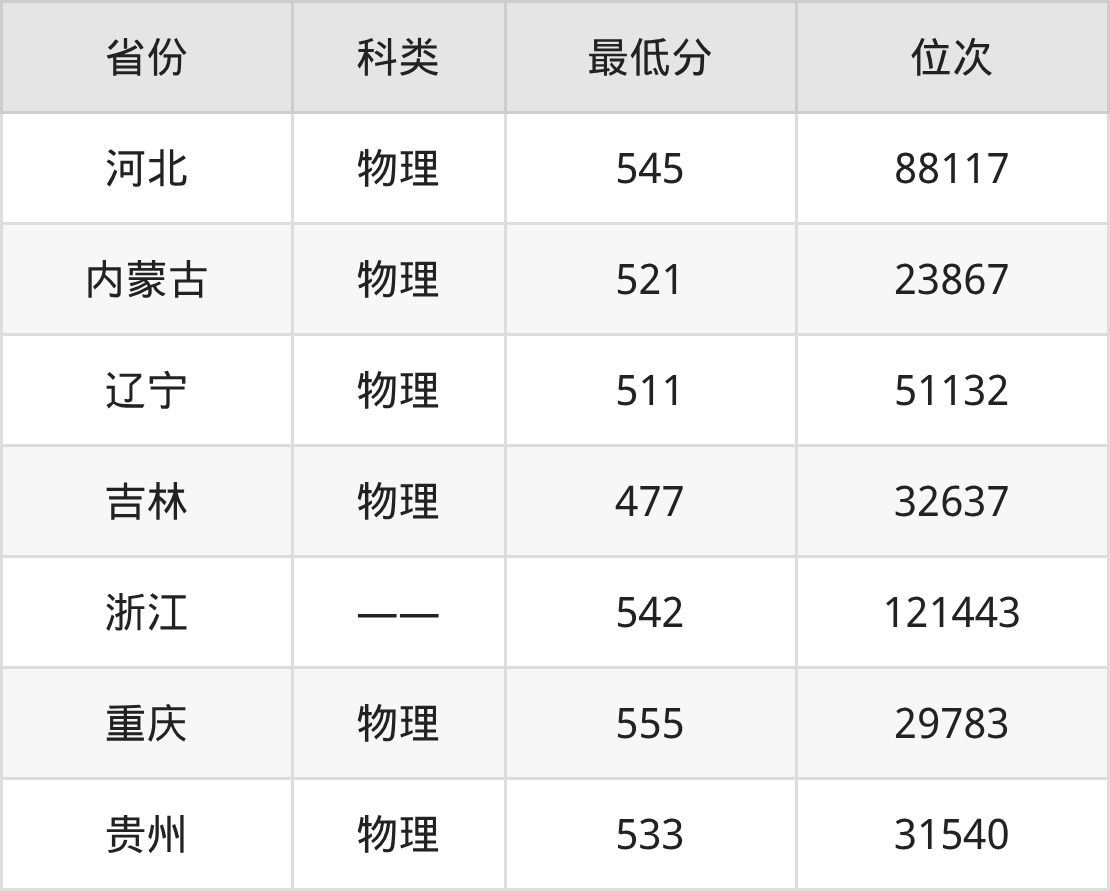 2025年昆明医科大学康复治疗学专业在浙江录取最低分:542分,对应位次排名是121443名。