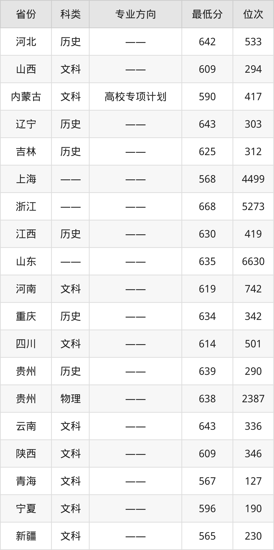 下面是2024年厦门大学人文科学试验班专业录取分数线一览表: