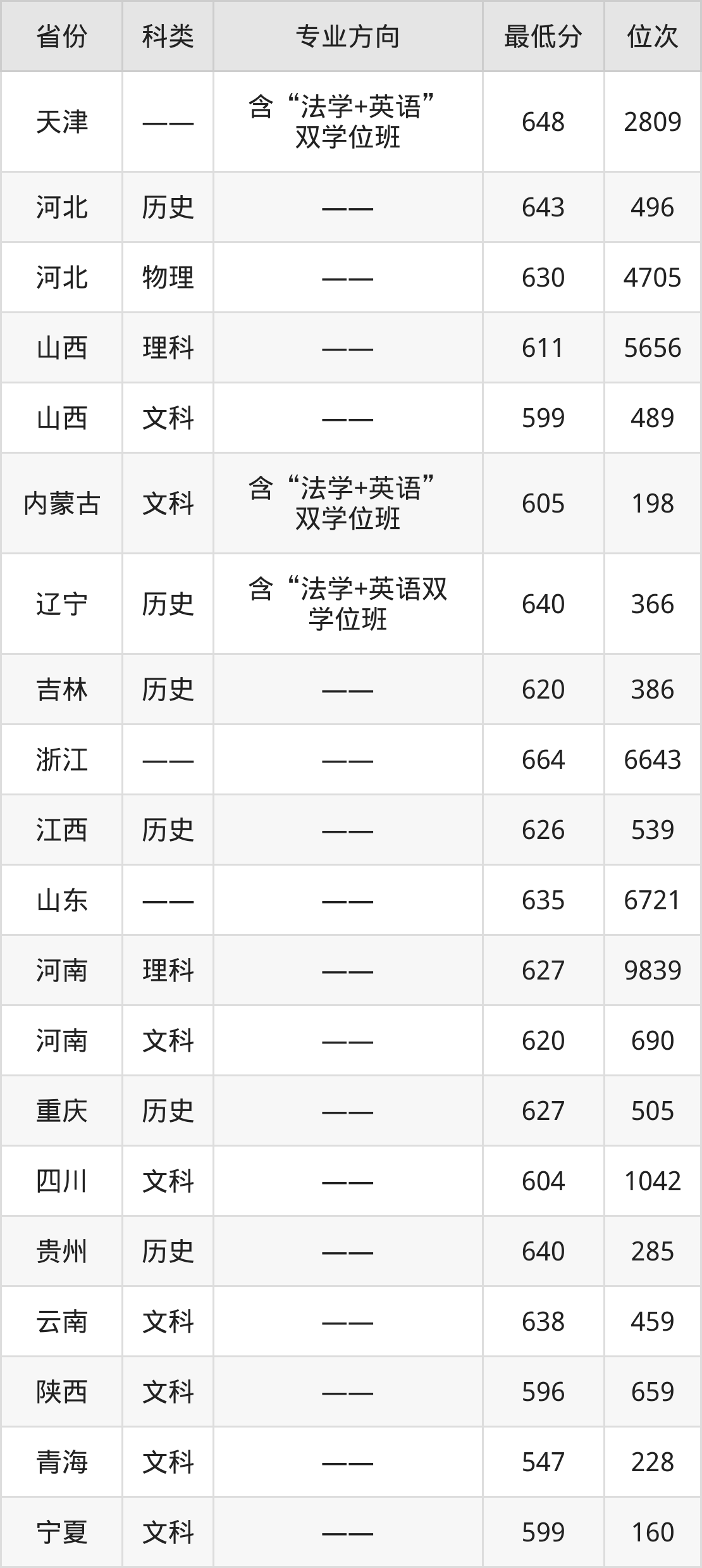 2024年山东大学法学类专业在天津录取最低分:648分,对应位次排名是2809名。