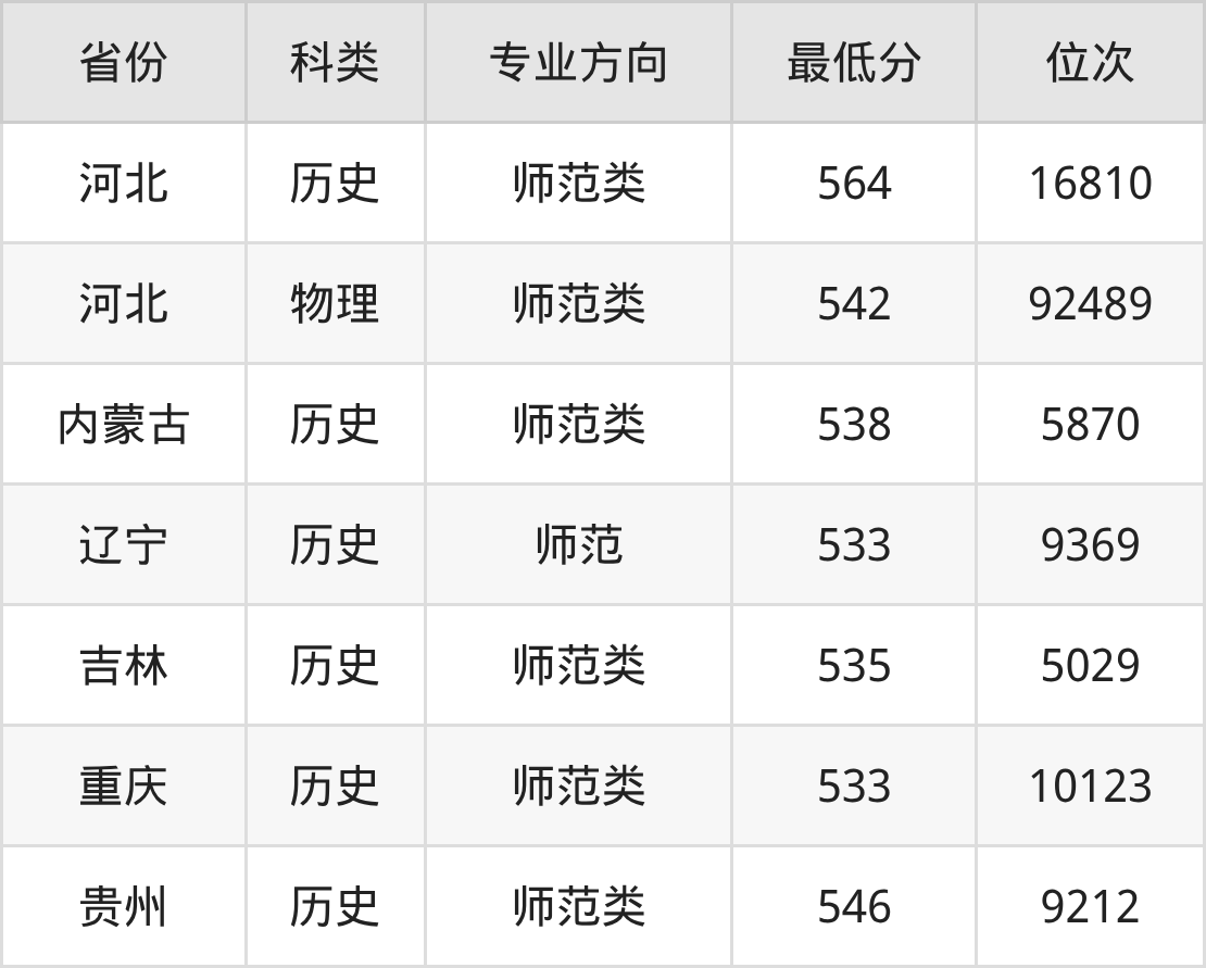 2025年西南民族大学学前教育专业在河北录取最低分:历史组是564分,对应位次排名是16810名;物理组是542分,对应位次排名是92489名。