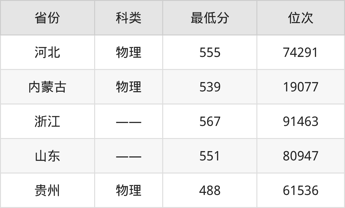 | 省份 | 首选 科目 | 招生名额 |