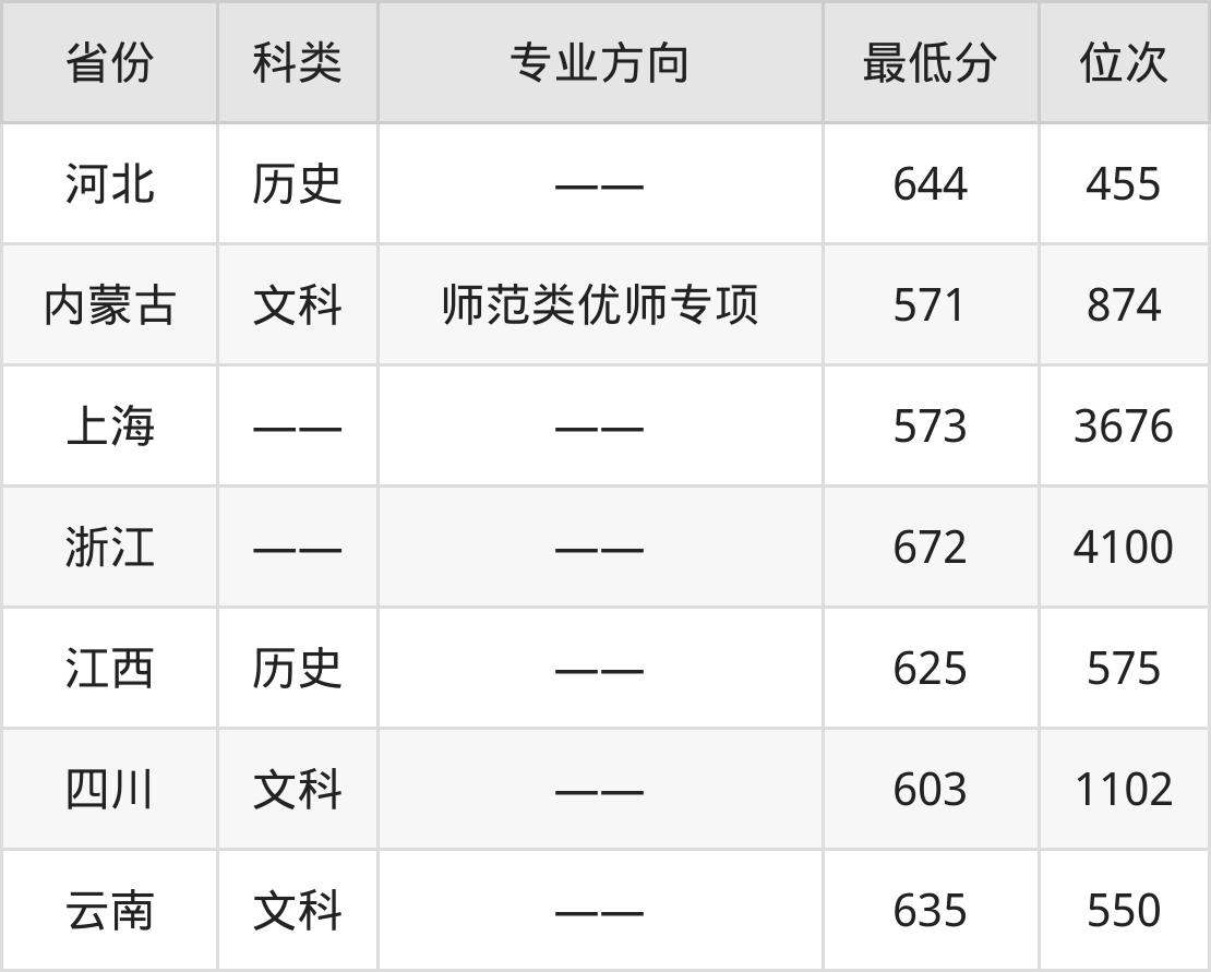 2024年华东师范大学英语专业在四川录取最低分:603分,对应位次排名是1102名。
