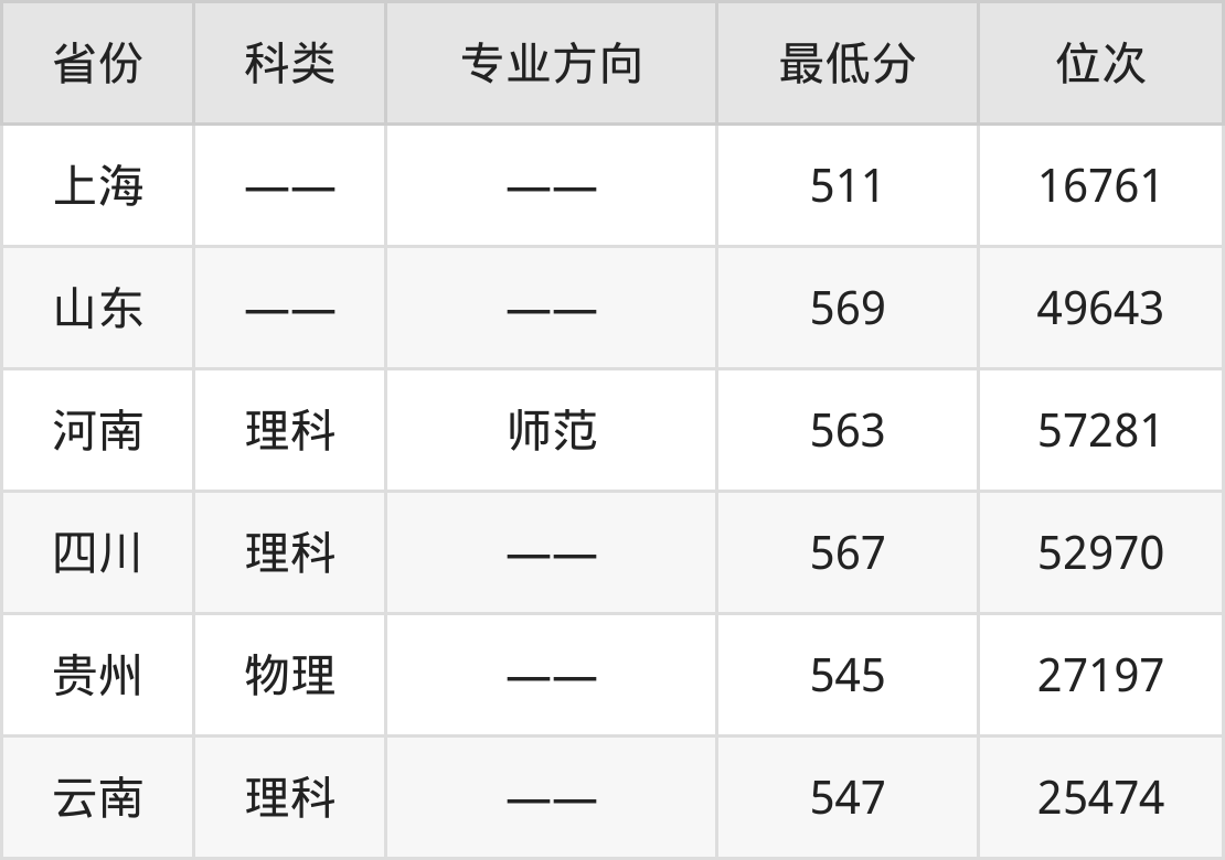 2024年上海师范大学物理学专业在全国6个省市招生,录取最低分从511分到569分不等,下面老师为大家具体介绍。