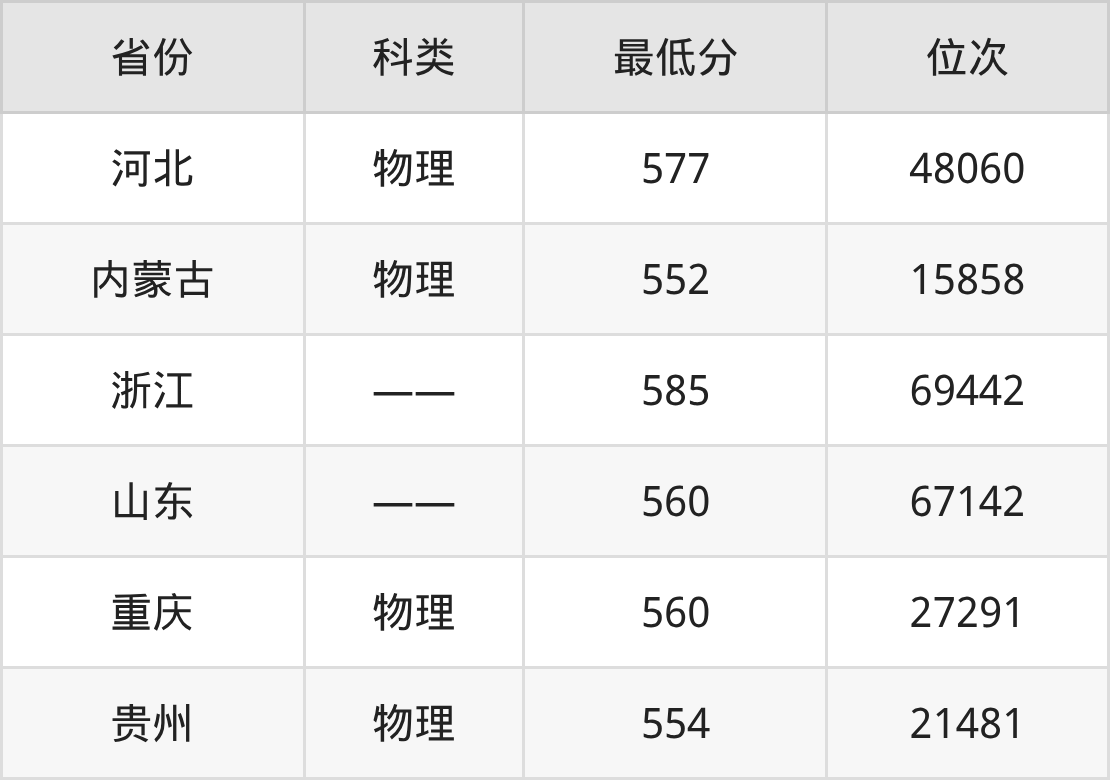 | 省份 | 首选 科目 | 招生名额 |