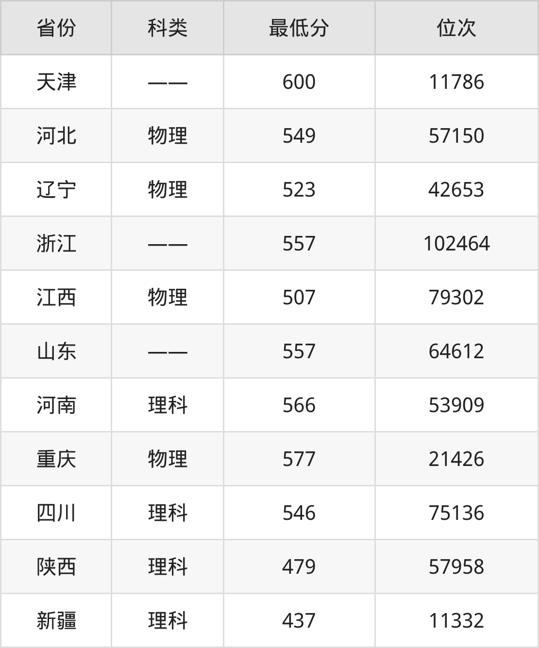 2024年新疆医科大学精神医学专业在天津录取最低分:600分,对应位次排名是11786名。