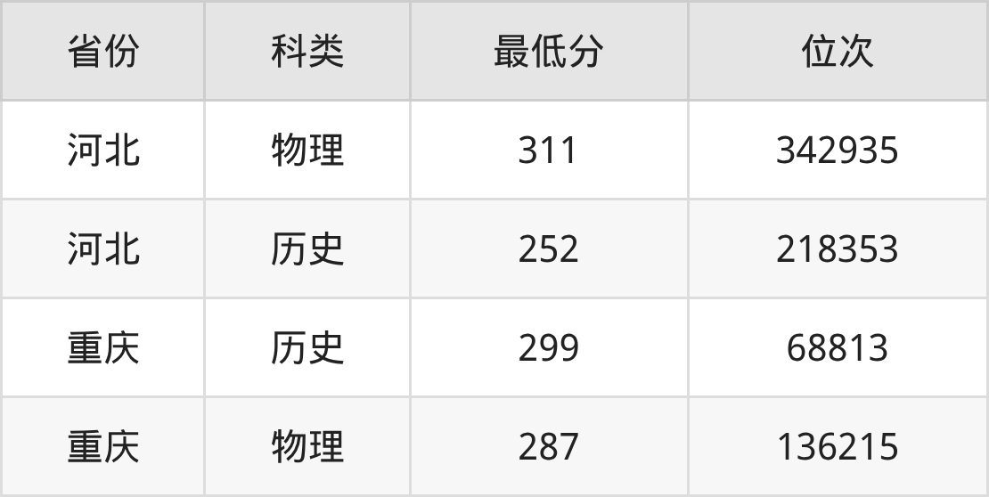 2025年重庆经贸职业学院电子信息工程技术专业在河北录取最低分:物理组是311分,对应位次排名是342935名;历史组是252分,对应位次排名是218353名。