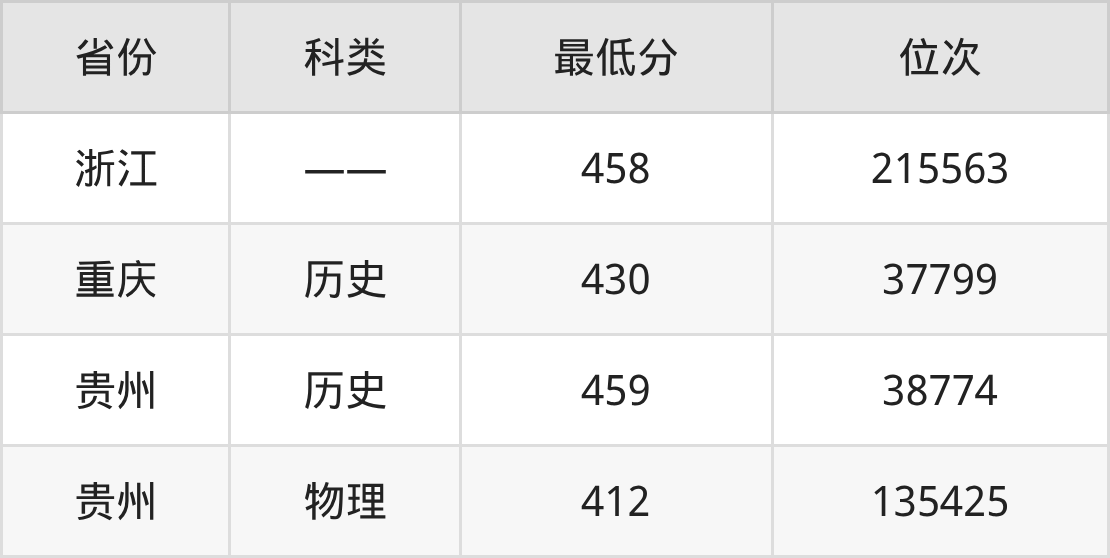 2025年湖南环境生物职业技术学院医学美容技术专业在贵州录取最低分:历史组是459分,对应位次排名是38774名;物理组是412分,对应位次排名是135425名。