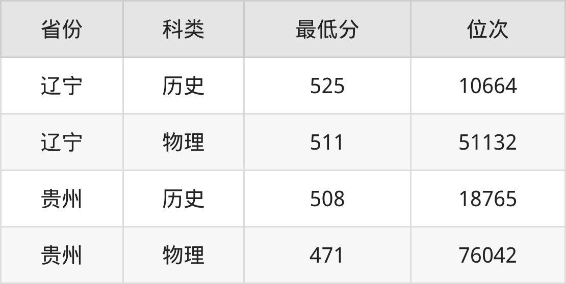2025年沈阳师范大学行政管理专业在贵州录取最低分:历史组是508分,对应位次排名是18765名;物理组是471分,对应位次排名是76042名。