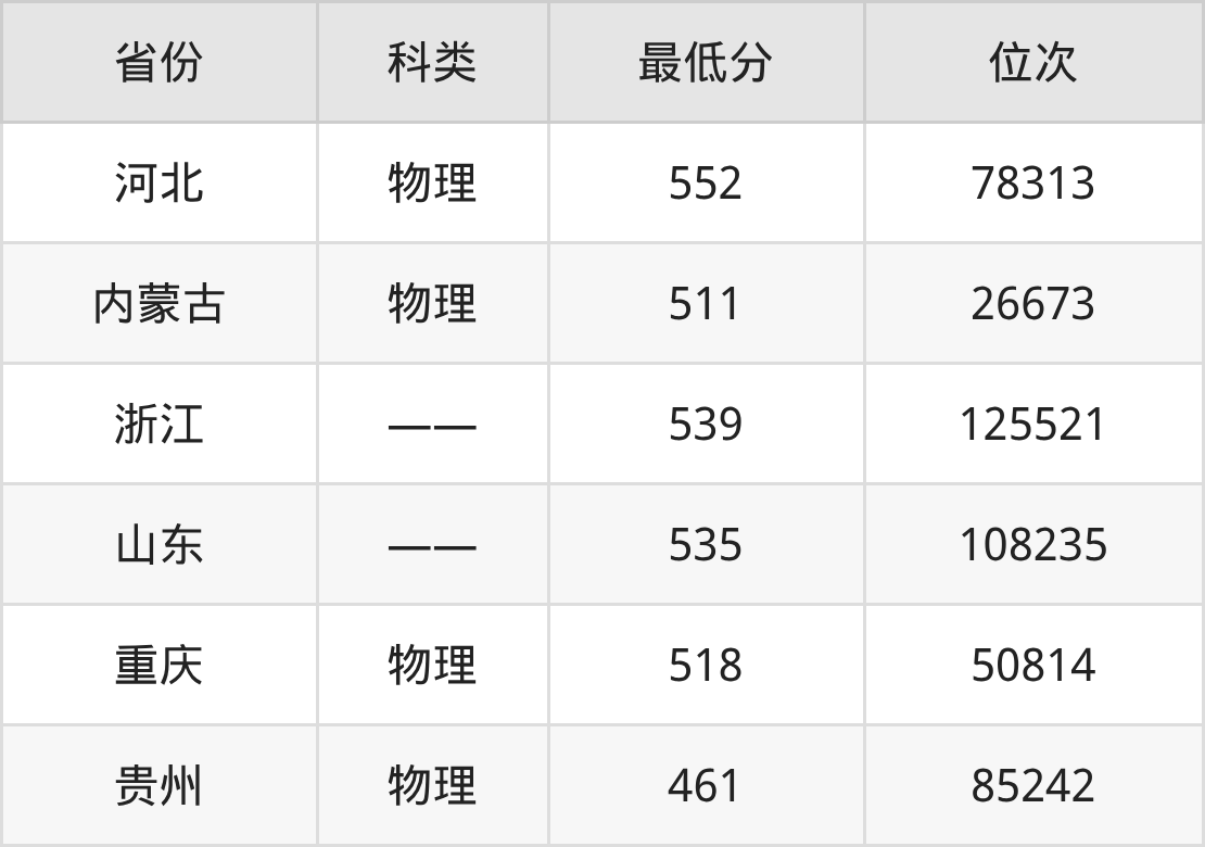 2025年天津城建大学安全工程专业在浙江录取最低分:539分,对应位次排名是125521名。