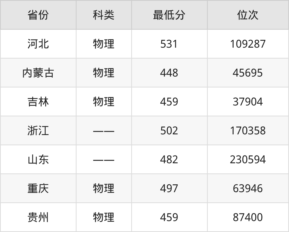 2025年内蒙古科技大学生物工程专业在贵州录取最低分:459分,对应位次排名是87400名。