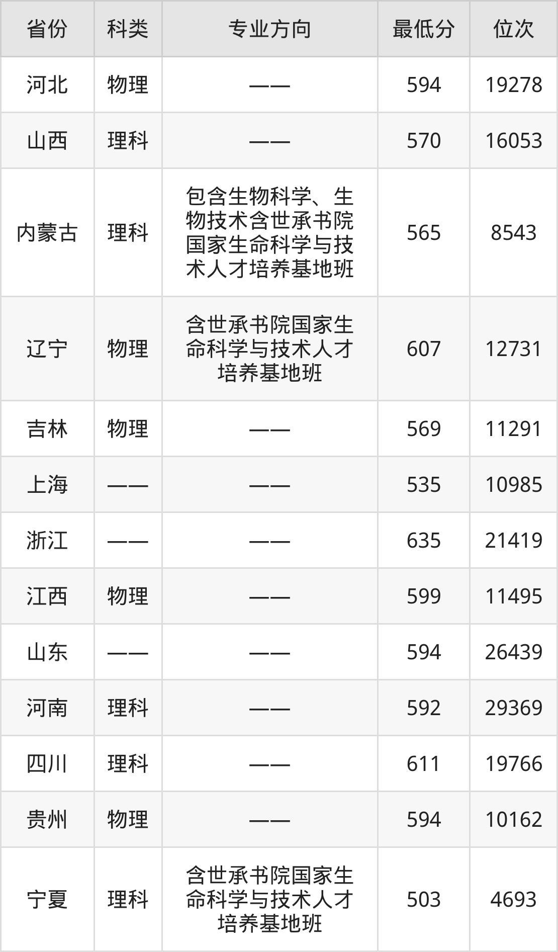 2024年湖南师范大学生物科学类专业在浙江录取最低分:635分,对应位次排名是21419名。