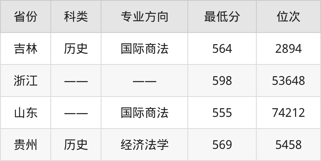2025年山东理工大学法学专业在吉林录取最低分:564分,对应位次排名是2894名。