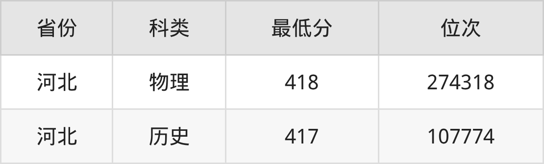 2025年河北工业职业技术大学现代家政服务与管理专业在河北录取最低分:物理组是418分,对应位次排名是274318名;历史组是417分,对应位次排名是107774名。