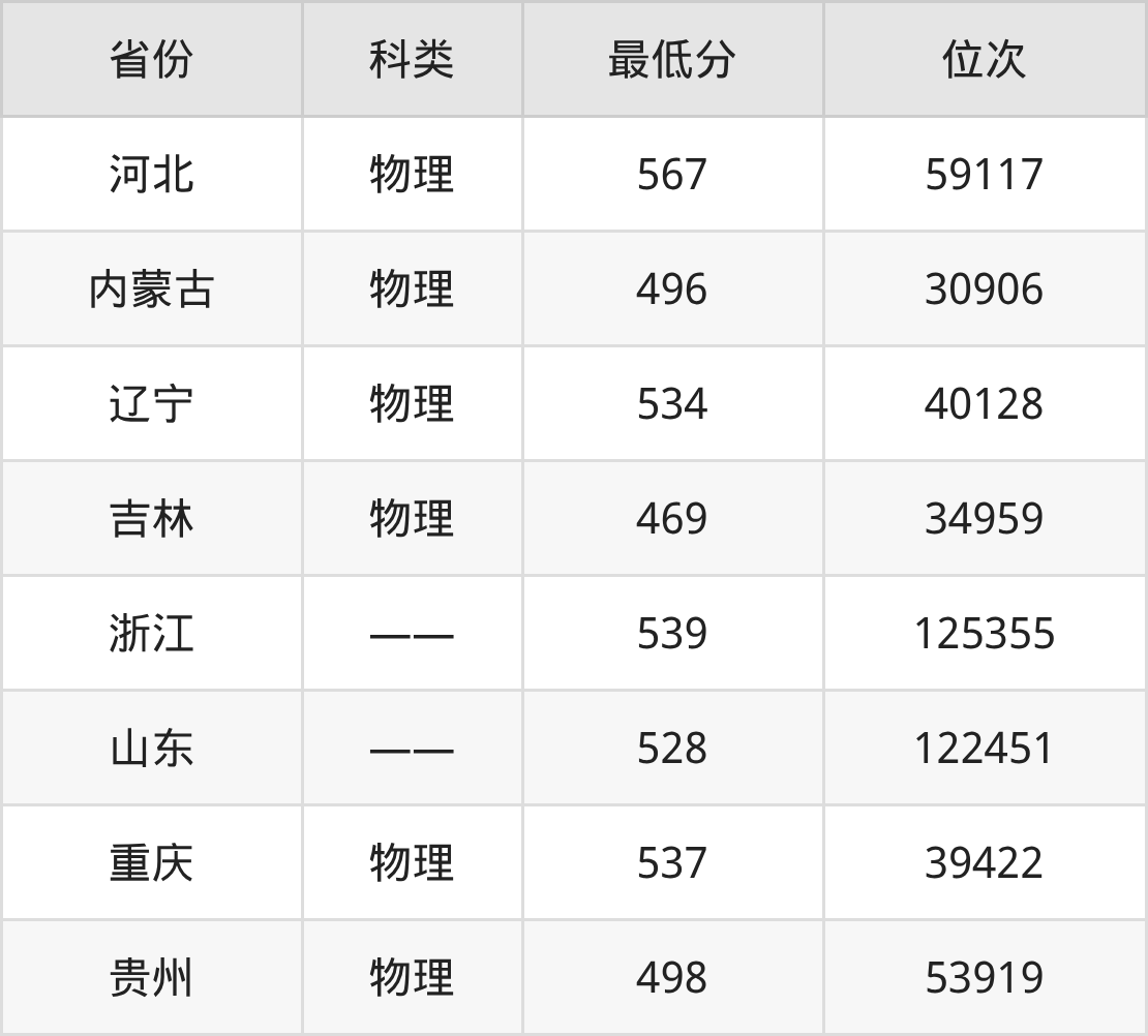 2025年吉林农业大学计算机类专业在浙江录取最低分:539分,对应位次排名是125355名。