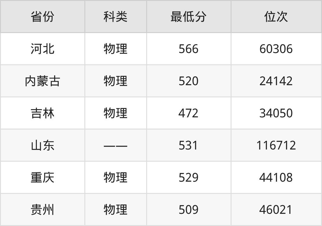 | 内蒙古 | 物理 | 4 |