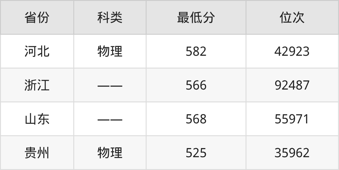 2025年浙江中医药大学医学检验技术专业在河北录取最低分:582分,对应位次排名是42923名。