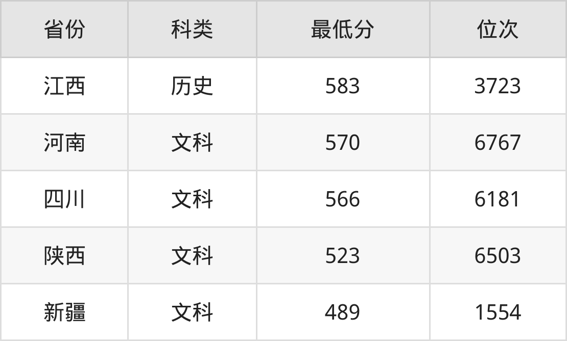 2024年湘潭大学档案学专业在江西录取最低分:583分,对应位次排名是3723名。