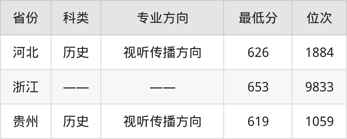 2025年中国传媒大学广播电视学专业在全国3个省市招生,录取最低分从619分到653分不等,下面老师为大家具体介绍。