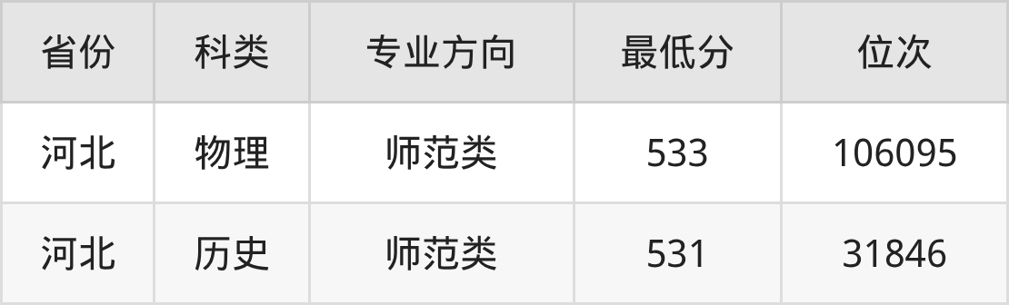 2025年邯郸学院英语专业在河北录取最低分:物理组是533分,对应位次排名是106095名;历史组是531分,对应位次排名是31846名。