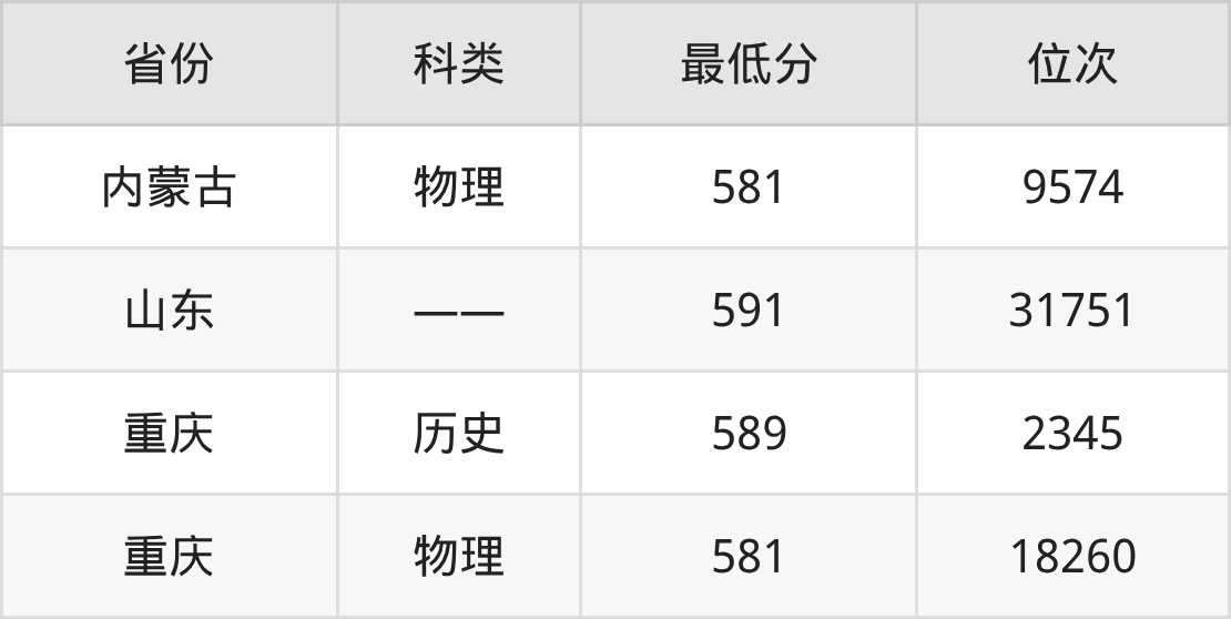 2025年成都中医药大学中医康复学专业在重庆录取最低分:历史组是589分,对应位次排名是2345名;物理组是581分,对应位次排名是18260名。