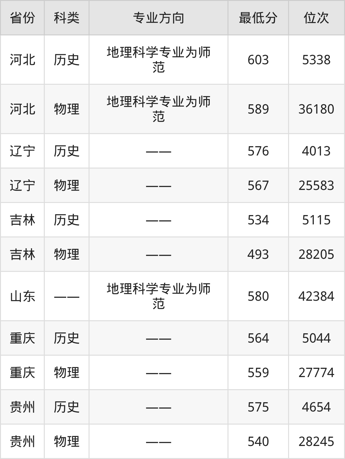 下面是2025年延边大学地理科学类专业录取分数线一览表: