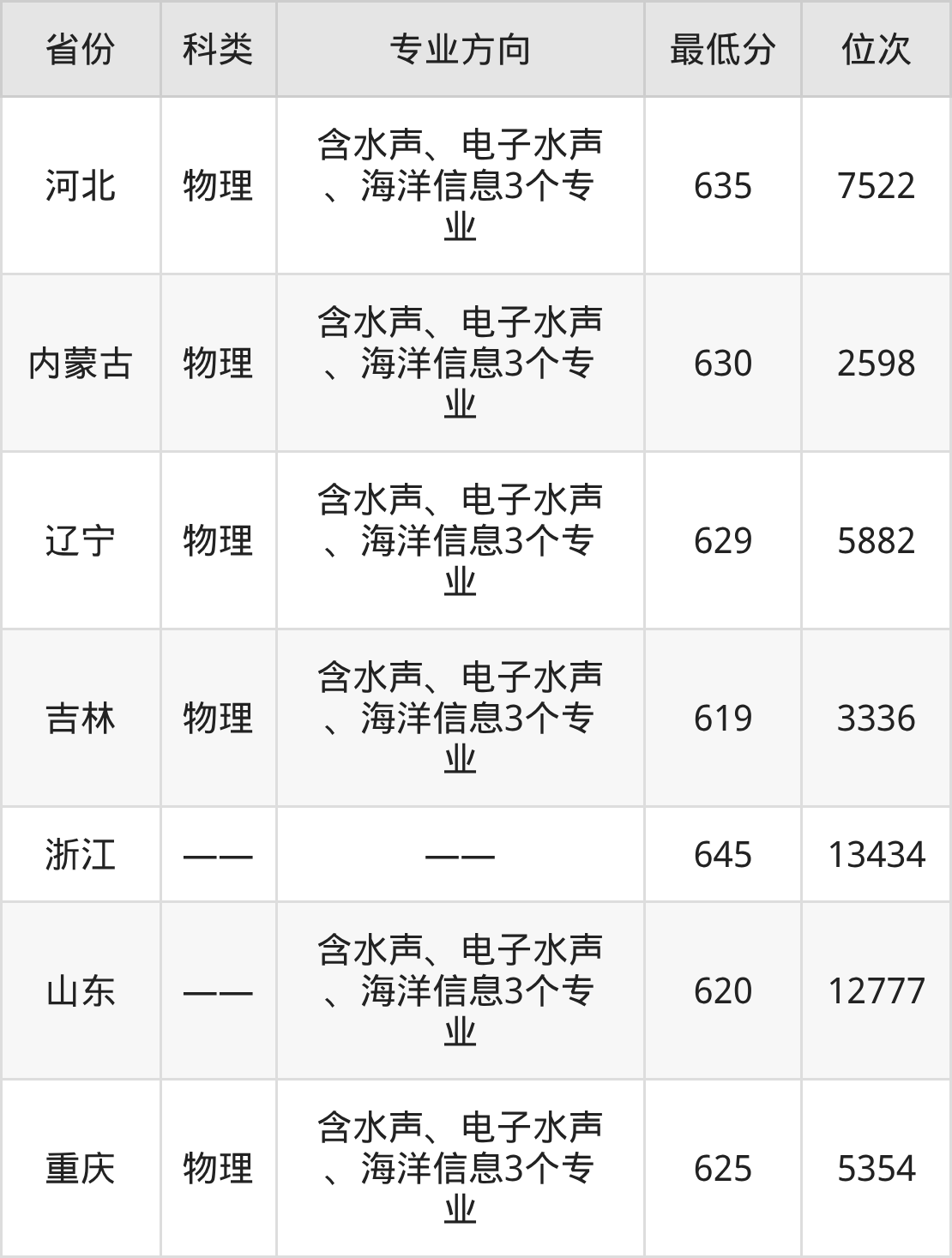 2025年哈尔滨工程大学水声工程专业在全国7个省市招生,录取最低分从619分到645分不等,下面老师为大家具体介绍。