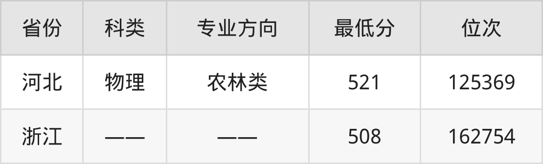 2025年宜春学院农学专业在浙江录取最低分:508分,对应位次排名是162754名。