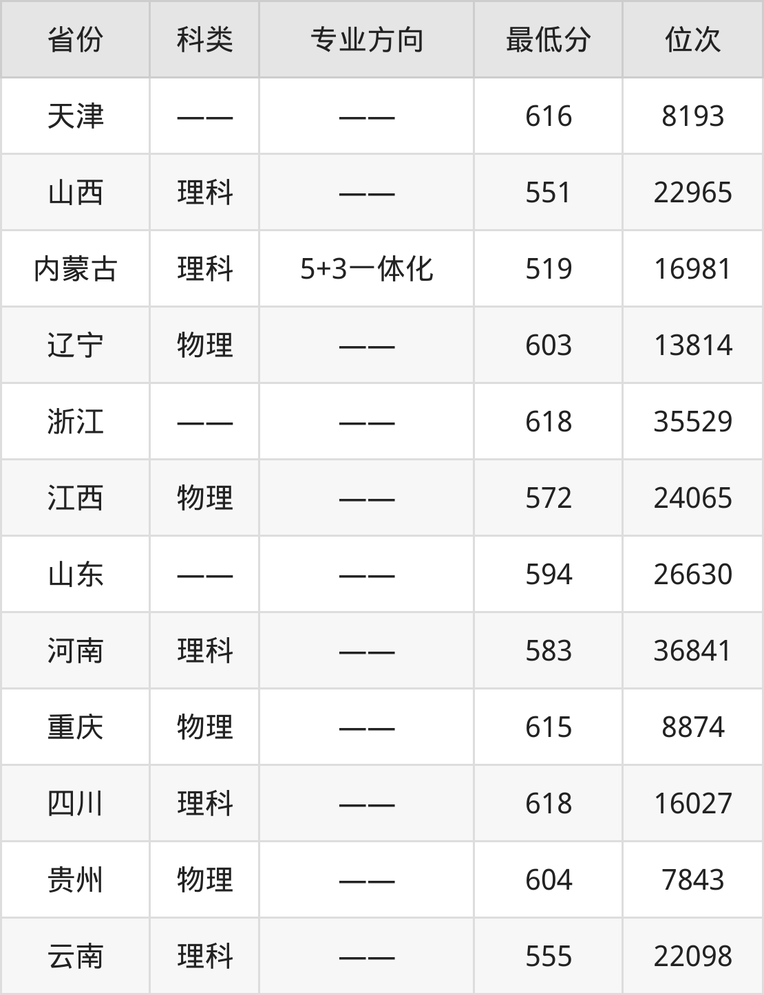2024年广西医科大学临床医学专业在浙江录取最低分:618分,对应位次排名是35529名。