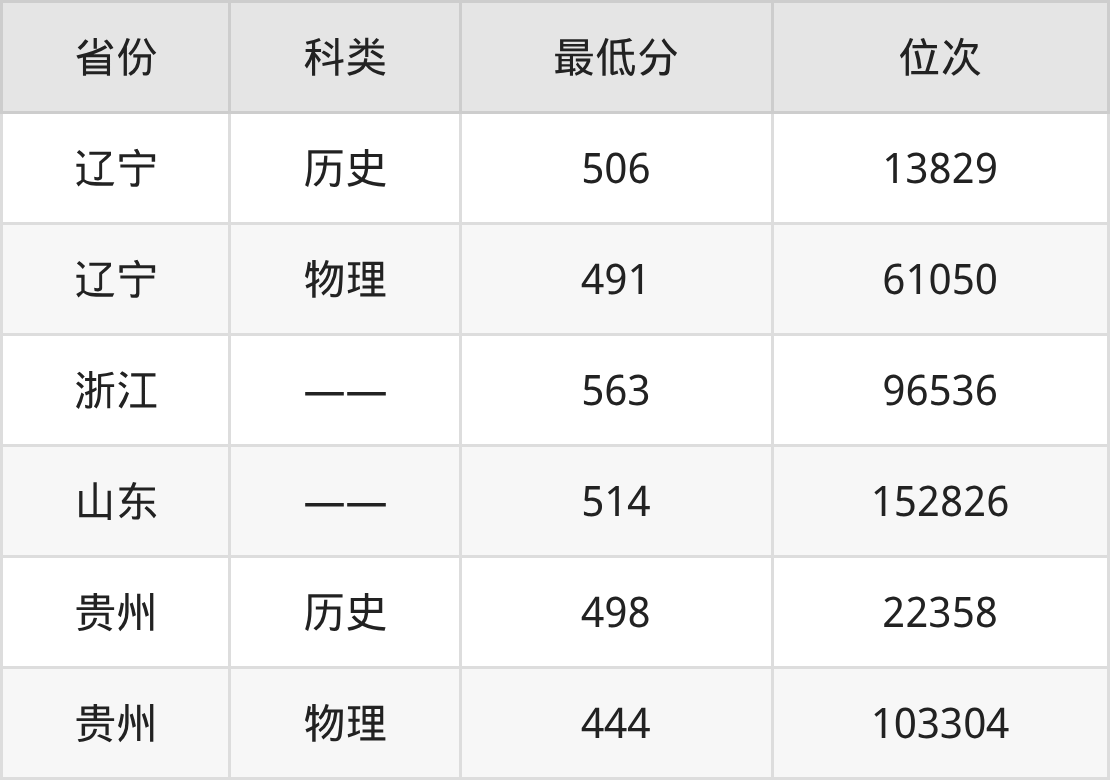 2025年沈阳师范大学酒店管理专业在贵州录取最低分:历史组是498分,对应位次排名是22358名;物理组是444分,对应位次排名是103304名。