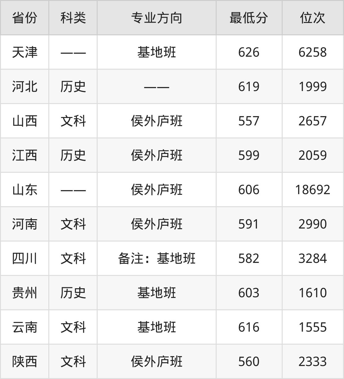 2024年西北大学历史学专业在全国10个省市招生,录取最低分从557分到626分不等,下面老师为大家具体介绍。