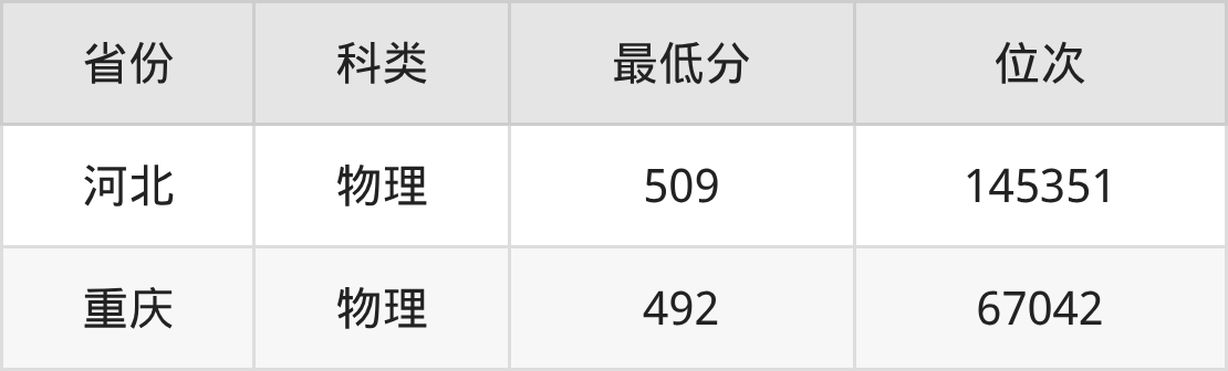 | 重庆 | 物理 | 4 |