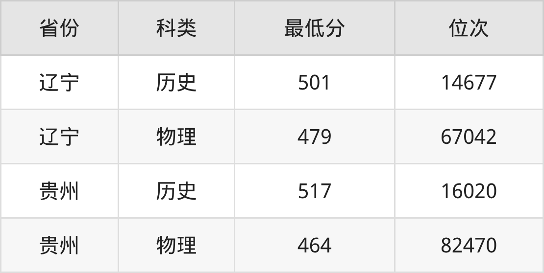 2025年大连海洋大学社会政策专业在贵州录取最低分:历史组是517分,对应位次排名是16020名;物理组是464分,对应位次排名是82470名。
