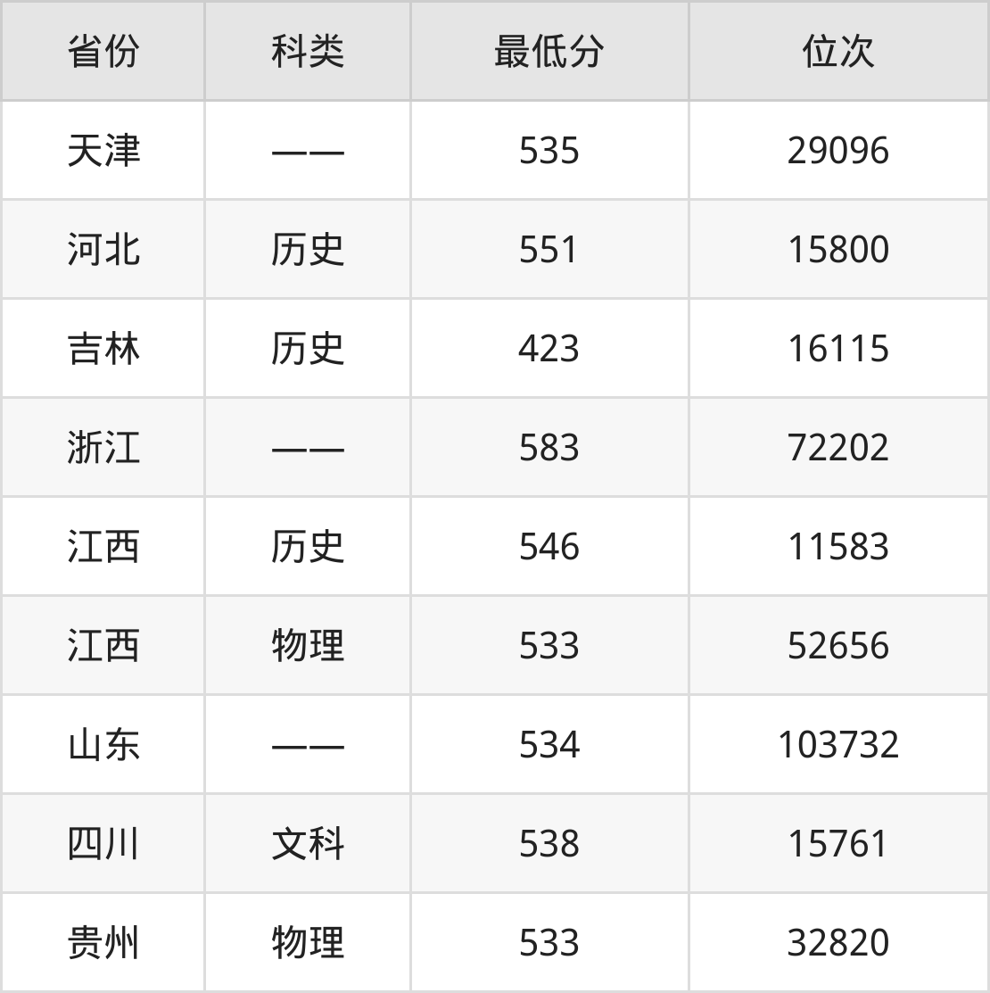2024年江西理工大学英语专业在贵州录取最低分:533分,对应位次排名是32820名。