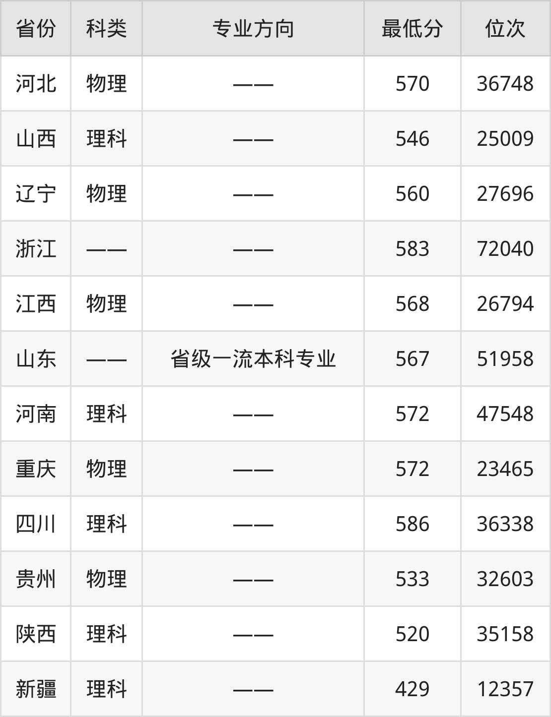 2024年新疆大学交通工程专业在浙江录取最低分:583分,对应位次排名是72040名。