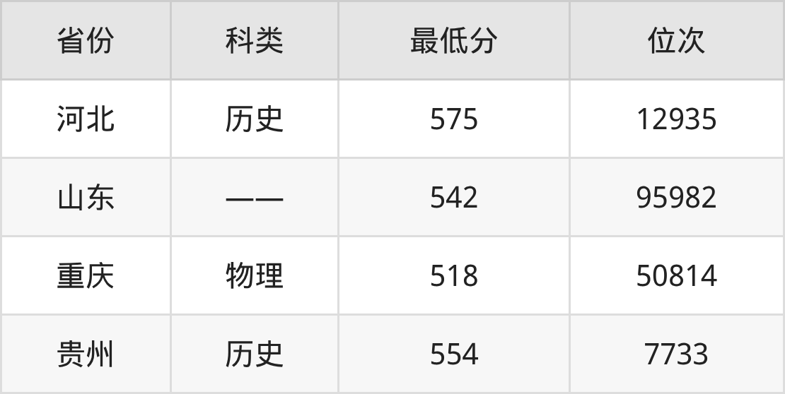 | 省份 | 首选 科目 | 招生名额 |