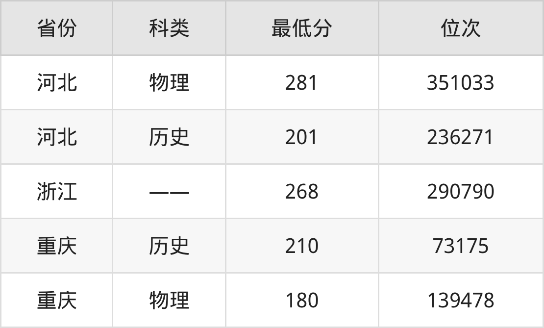 2025年四川应用技术职业学院数字媒体技术专业在重庆录取最低分:历史组是210分,对应位次排名是73175名;物理组是180分,对应位次排名是139478名。