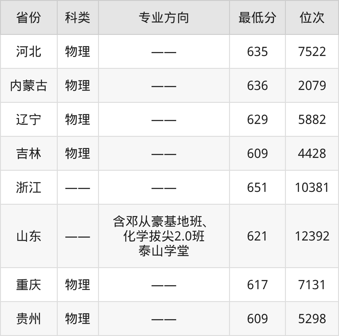 2025年山东大学化学类专业在浙江录取最低分:651分,对应位次排名是10381名。