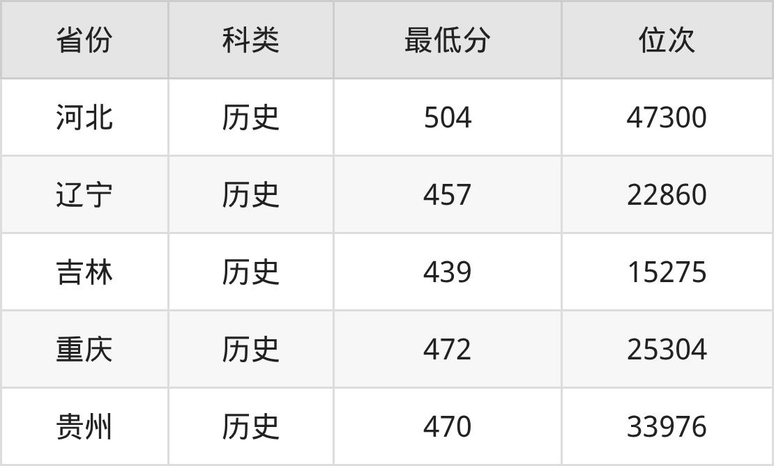 | 省份 | 首选 科目 | 招生名额 |