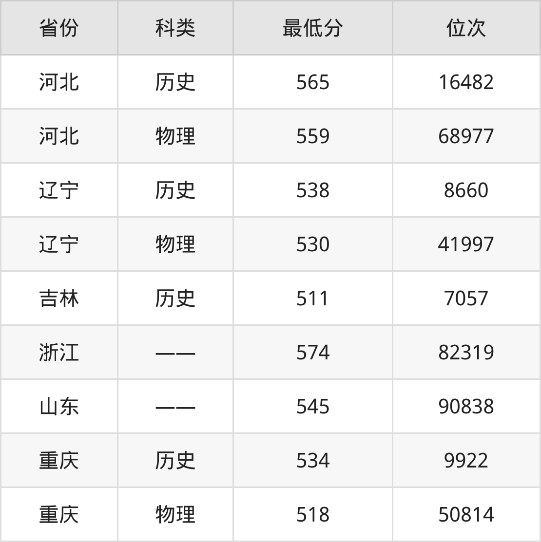 | 重庆 | 物理 | 1 |
