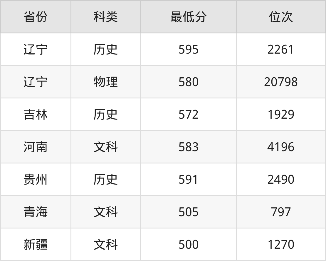 2024年辽宁大学历史学专业在辽宁录取最低分:历史组是595分,对应位次排名是2261名;物理组是580分,对应位次排名是20798名。