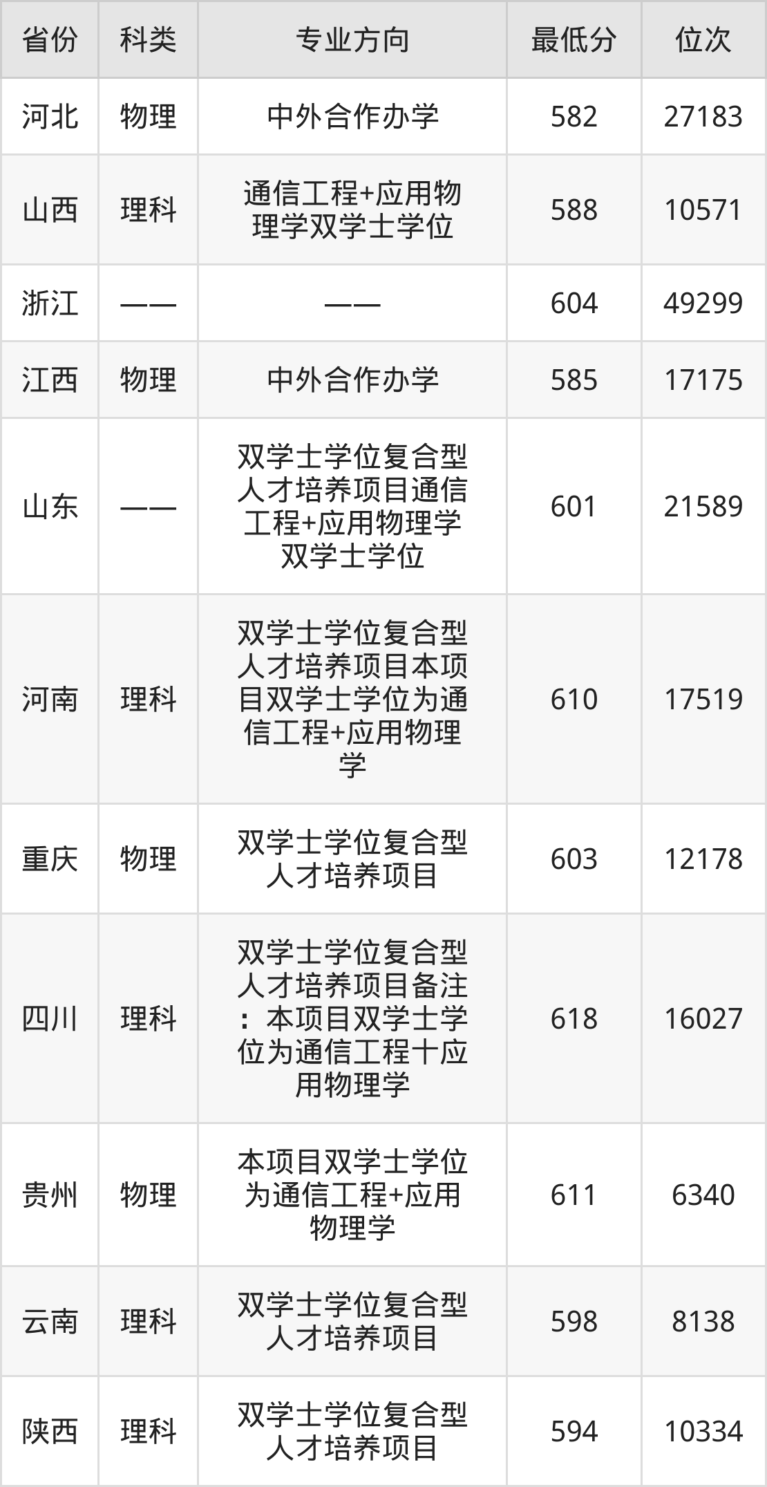 2024年重庆邮电大学通信工程专业在全国11个省市招生,录取最低分从582分到618分不等,下面老师为大家具体介绍。