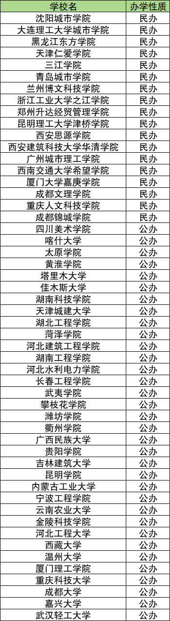 全国二本建筑学招生院校一共有52所,其中公办34所、民办18所。